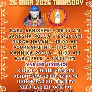 BABA PATOTSAV/STHAPANA DAY-2 16 Apr 6:30 am - 8:30 pm Shirdi Sai Melbourne32 Halley Avenue Camberwell VIC 3124