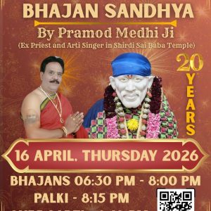 Shirdi Sai Bhajan Sandhya 16 Apr 6:30 pm - 8:00 pm Shirdi Sai Melbourne32 Halley Avenue Camberwell VIC 3124