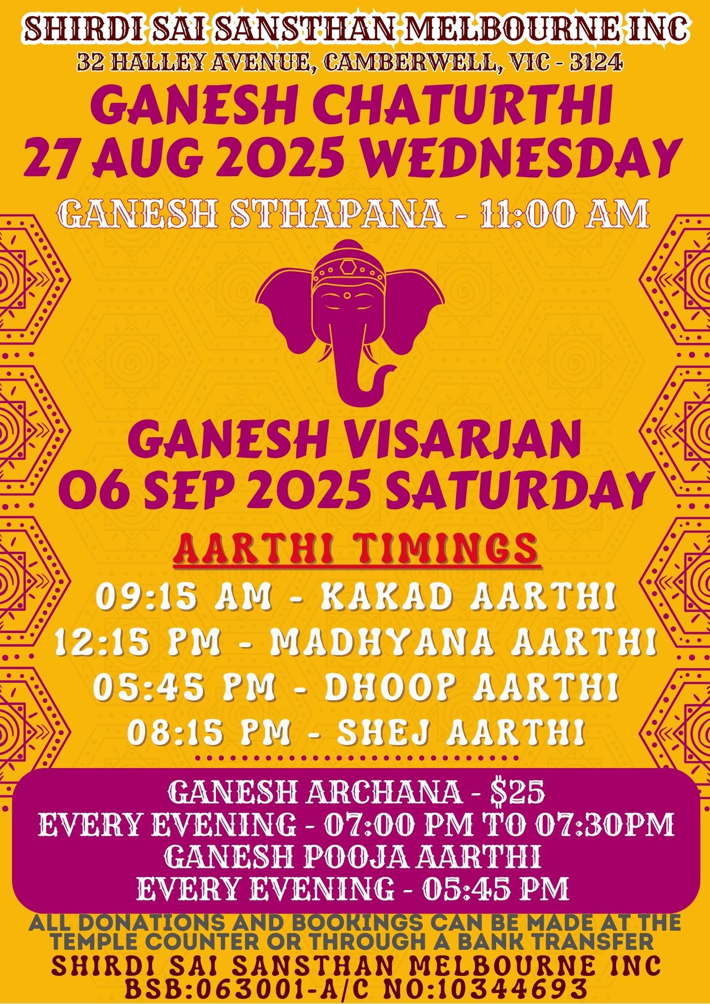 GANESH CHATURTHI + Add to Google Calendar + iCal / Outlook export The event is finished. Date Aug 27 2025 Expired! Time 9:15 pm - 9:15 pm Share this event